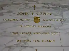 Джон Кэнди похоронен в Калвер-Сити (Калифорния) на Кладбище Святого Креста.