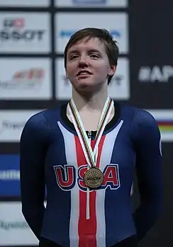 В 2018 году на трековом чемпионате мира в Апелдорне вновь взяла бронзу в индивидуальной гонке преследования и победила в командной гонке преследования, став таким образом трёхкратной чемпионкой мира по трековому велоспорту. Стала второй в гонке-критериуме на шоссейном чемпионате США.