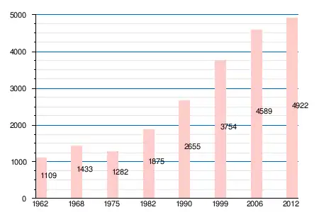 | 1962 | 1968 | 1975 | 1982 | 1990 | 1999 | 2006 | 2007 | 2011 | 2012 |