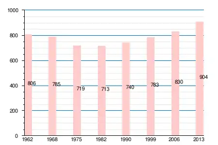 Население коммуны в 2011 году составляло 902 человека[6], в 2012 году — 899 человек[7], а в 2013-м — 904 человека[5].