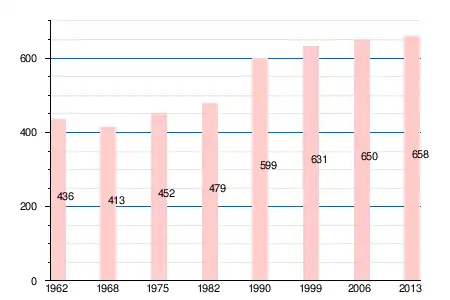 Население коммуны в 2011 году составляло 656 человек[6], в 2012 году — 669 человек[7], а в 2013-м — 658 человек[5].