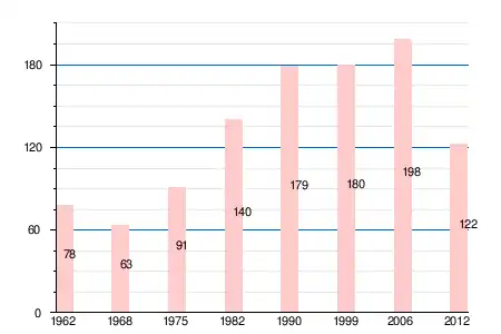 | 1962 | 1968 | 1975 | 1982 | 1990 | 1999 | 2006 | 2011 | 2012 |