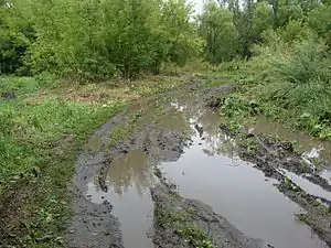 Село Кянда. Дорога в нижней части села. Последствия дождей. Август, 2013 год