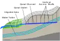 Остальной частью конструкции являются вертикальные колодцы-диканы доступа, которые во время работы также позволяют отслеживать состояние туннеля и устранять заторы. Материал, извлеченный из стояка, обычно остается возле входа, так что всю поверхность можно увидеть в виде ряда небольших земляных насыпей.