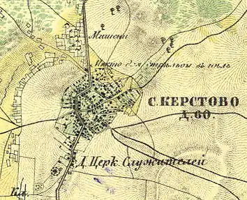 КЕРСТОВО — село, принадлежит действительному статскому советнику Дубянскому, число жителей по ревизии: 172 м. п., 176 ж. п.;(1838 год)[8]