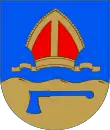 Герб общины изображает митру епископа Генриха Уппсальского, которого по легенде убил топором язычник Лалли.
