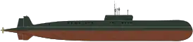 Новаторской была и двухкорпусная схема лодки: лёгкий корпус придавал ей правильную гидродинамическую форму, в корме были установлены 2 винта; прочный корпус в передней части был выполнен в виде восьмерки, освобождая место по бортам для размещения наклонных ракетных шахт. Корпусные конструкции изготавливались из титанового сплава.[3]