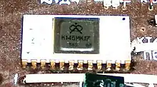 Микросхема производилась заводами «Ангстрем» (г. Зеленоград) и «Экситон»(Московская область, г. Павловский Посад). Микросхема выполнена в корпусе DIP24. Завод «Ангстрем» выпускал микросхему в металлокерамическом корпусе (вероятно, опытное производство), завод «Экситон» — в пластиковом. При этом оба варианта микросхемы имели одинаковое обозначение.