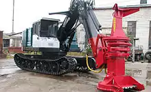 Стреловой погрузчик с полноповоротным грейферным захватом. Эта машина предназначена для погрузки и выгрузки, штабелевки и сортировки хлыстов и бревен, а также различных видов длинномерных грузов (столбы, прокат, балки, рельсы, трубы и др.).