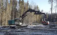 Валочно-сучкорезно-раскряжевочная машина (лесной комбайн) с прогрессивным автоматизированным харвестерным оборудованием и компьютерной системой измерения.