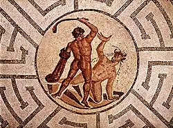 Тесей убивает Минотавра в центре лабиринта, мозаика