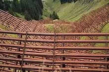 - инженерные методы, включающие в себя постройку специализированных инженерных сооружений в лавиноопасных районах (снегозадерживающих заграждений, подпорных и свайных стенок, щитов, сетей из тросов и т. п.), а также — работу по террасированию склонов.