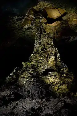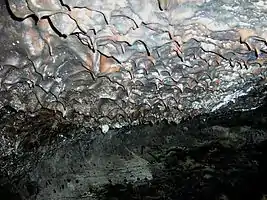 - Лавовые туннели на Гавайях, с базальтовыми сталактитами на потолке
