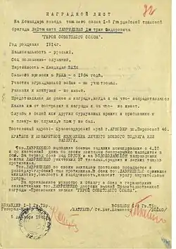 - Наградной лист в электронном банке документов «Подвиг народа» (архивные материалы ЦАМО. Ф. 33. Оп. 682524. Д. 240. Л. 72).