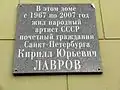 - Вести. Ru: На доме в Петербурге, где жил Кирилл Лавров, установят памятную доску