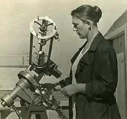 ![]() М. Д. Лаврова 21 сентября 1941 года на наблюдении солнечного затмения | |