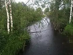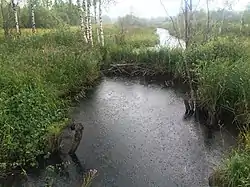 Ручей берёт начало из болота без названия и далее течёт преимущественно в северном направлении[4][5][6].
