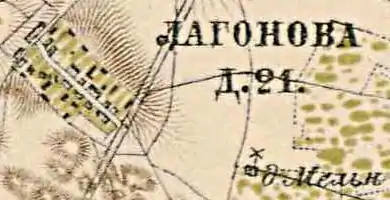 ЛАГОНЕВО — деревня госпожи Дренакиной, по просёлочной дороге, число дворов — 22, число душ — 47 м. п.(1856 год)[9]
