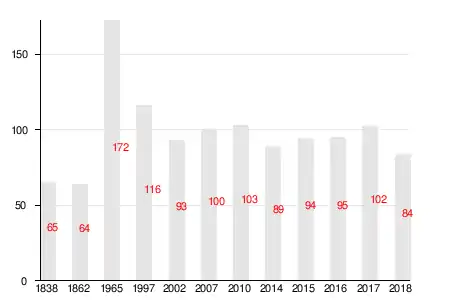 | 1838 | 1862 | 1965 | 1997 | 2007[23] | 2010[24] | 2014[25] |