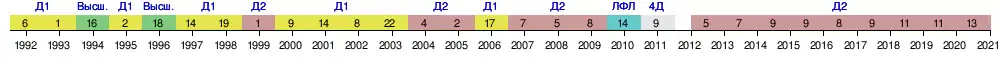 - Высшая лига: 16 место (1994)