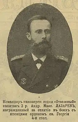 Лазарев Андрей Максимович (1865—1924) — офицер Российского императорского флота, участник Русско-японской войны, защитник Порт-Артура, Георгиевский кавалер, контр-адмирал. В годы Гражданской войны служил в Добровольческой армии и ВСЮР, в 1919 году произведён в вице-адмиралы. Эмигрировал из России.