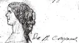 ![]() Елизавета Валериановна Сафонович. Фрагмент рисунка из анонимного альбома 1850-х годов с изображением В. И. Сафоновича и членов его окружения | |
