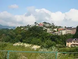 Посёлок расположен в низменностях предгорной зоны южного склона Главного Кавказского хребта. Горы и хребты начинают резко возвышаться при удалении от побережья моря. Средние высоты на территории посёлка составляют 20 метров над уровнем моря. На северо-востоке над посёлком возвышается гора Бостепе (535 м), а на юго-востоке гора Соутлянтепе (592 м). В окрестностях посёлка разводятся японские бананы, киви и камфорное дерево. Выше посёлка расположено охраняемое самшитовое ущелье[3].
