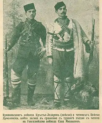 — писала газета «Московские ведомости» 21 января 1899 года. В 1900 году 19-летний Крыстю Лазаров вступил в ряды Внутренней македонско-одринской революционной организации. В 1901—1903 годах он был четником в повстанческой чете капитана Йордана Стоянова.