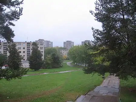 Для жилой застройки района сотрудниками Института проектирования городского строительства Госстроя Литовской ССР (архитекторы Б. Круминис, В. Саргялис, А. Умбрасас, инженер В. Зубрус и другие) и Вильнюсского ордена Ленина опорно-показательного домостроительного комбината была разработана унифицированная серия 5- и 9-этажных жилых домов: 1-464 ЛИ. Каждый из домов серии компоновался из нескольких секций, с учётом сложного ландшафта, и всего получилось 9 типов домов этой серии. Застройка ими района началась в 1967 году[2]. Строительство в основном закончено к 1972 году. В то же время были построены 12-этажные дома серии 1-3905. К каждому дому ведут дороги и тротуары от основных улиц. В дополнение к этому для индивидуального транспорта на окраине I и II микрорайонов были построены полуподземные гаражи оригинальной конструкции — в форме разомкнутых окружностей. Значительное место в большинстве дворов занимали детские площадки с такими элементами, как «глобус», «ракета», «мостик», песочница, качели, карусель; а также спортивные площадки. Архитектурные сооружения органично вписываются в рельеф и как бы составляют единое целое с зелёными насаждениями, находятся в гармонии с окружающей природой.