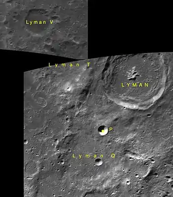 - Образование сателлитного кратера Лайман V относится к нектарскому периоду[1].
