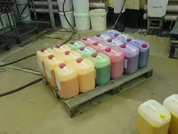 Цвет материала, который ставится в конце шифра, обозначается полным словом — голубой, жёлтый и др. Например, «Эмаль ХВ—113 голубая» — эмаль перхлорвиниловая, для наружных работ, голубая.