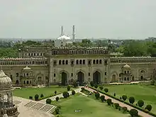 Комплекс обнесен стеной, в которую встроены большие, украшенные орнаментом ворота Руми Дарваза (Турецкие ворота), построенные по образцу одних из городских ворот Стамбула (в исламском мире Византия, впоследствии Османская империя, была известна под названием «Рум»). Центр ворот украшен изображением двух рыб (махи маратиб) — гербом навабов, который можно встретить практически на всех постройках Лакхнау.