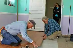Ламинированное напольное покрытие (от англ. Laminate от лат. lamina — «пластинка») — строительный материал, изготовленный из древесноволокнистых плит (ДВП) сухого способа производства или моноструктурных, облицованных плёнками на основе термореактивных полимеров[1][2].
