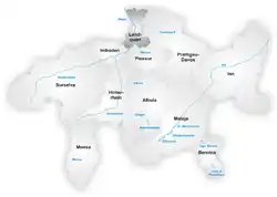 | Игис | 7008 | 10,88 | 2942 | С 1.01.2012 объединены в коммуну Ландкварт | |