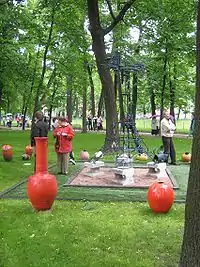 - Различные крупные декоративные элементы (озеро, пруд, ручей, фонтан, камни, скульптура).