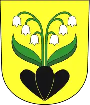 Стилизованные изображения ландыша размещены на полях гербов ряда городов. Слева направо: Аппенвир (Франция), Боппельзен (Швейцария), Луннер (Норвегия) | ||||||||||
