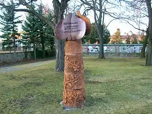 - Скульптурная композиция Евы Ланзиной, посвящённая созданию «Домовины». Находится в сквере около Социального дома в городе Хойерсверда.