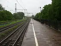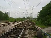 Пути по путепроводу над Ланским шоссе. За путепроводом вправо отходит и начинает уходить вниз нечётный путь на Сестрорецк. Крайний левый путь — чётный из Сестрорецка