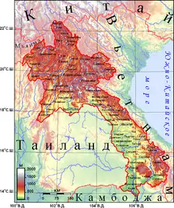 Лаос расположен на полуострове Индокитай и не имеет выхода к морю[6]. Через Вьетнам его отделяет от Южно-Китайского моря менее 50 км.