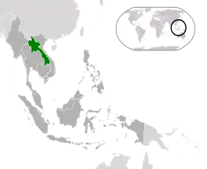 Лао́с (лаос. ປະເທດລາວ [patʰeːdlaːw], Лау[5]), полное название — Лао́сская Наро́дно-Демократи́ческая Респу́блика (лаос. ສາທາລະນະລັດ ປະຊາທິປະໄຕ ປະຊາຊົນລາວ [sǎːtʰáːlanalat pásáːtʰipátàj pásáːsónláːw]) — государство в Юго-Восточной Азии со столицей Вьентьян. На западе граничит с Таиландом, на востоке — с Вьетнамом, на юге — с Камбоджей, на севере — с провинцией Юньнань Китая, на северо-западе — с Мьянмой[6].