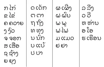 Лаосское письмо очень похоже на тайское (благодаря общему происхождению от кхмерского письма), однако орфография более проста, и ближе к произношению, частично благодаря проведенной в 1960-х годах реформе орфографии.