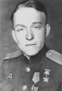 - На момент представления к званию Героя Советского Союза — лейтенант.