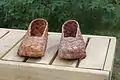 Новые, только что сплетённые лапти были сделаны по одной колодке и в паре не отличались левый от правого.
