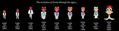 Исходно Ларри представлял собой обычный 16-цветный спрайт, хотя на коробке с игрой он был изображён в виде мультяшного персонажа с большими треугольными головой и носом. По мере совершенствования компьютерных технологий появилась возможность изобразить Ларри более детально, хотя при этом пришлось ориентироваться на уже знакомый пользователю по обложке образ. Отсюда и большой нос героя: по словам Лоу, хотя в первой игре нос был обозначен всего одним пикселем, он получался огромным относительно остального спрайта, у авторов был выбор между большим носом главного героя и его отсутствием.