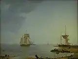 Udsigt fra Langelinie mod Nyholm med Mastekranen Morgenbelysning (1850)