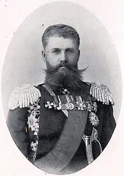 | Награды и премии | Золотое оружие «За храбрость» (1877), Орден Святого Станислава 2-й ст. (1877), Орден Святой Анны 2-й ст. (1878), Орден Святого Георгия 4-й ст. (1877), Орден Белого Орла (1904). |