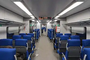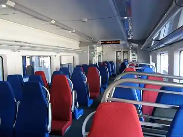 - городского исполнения с уменьшенным числом сидячих мест и салонными поручнями (составы ЭС2Г с номерами 045—086, 101, 106—113, 136);