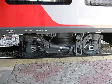 по осям сцепок: головной — 26 031 мм промежуточный — 24 800 мм |