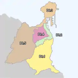 Dt4 — Сьюдад Альта (101.684 чел.): Альтависта, Чумберас, Торрес Куэвас, Диас Касанова, Дон Соило, Эль Кардон, Эскалеритас, Ла Ферия, Ла Минилья, Рехояс, Лас Торрес, Лас Торрес Индастриал, Рехояс Альтас, Сан-Антонио, Сан-Ласаро и Шаманн.