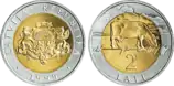 2 лата | 24,35 | 1,8 | 6 | рубчатый с надписью LATVIJAS BANKA |